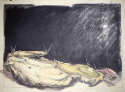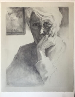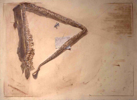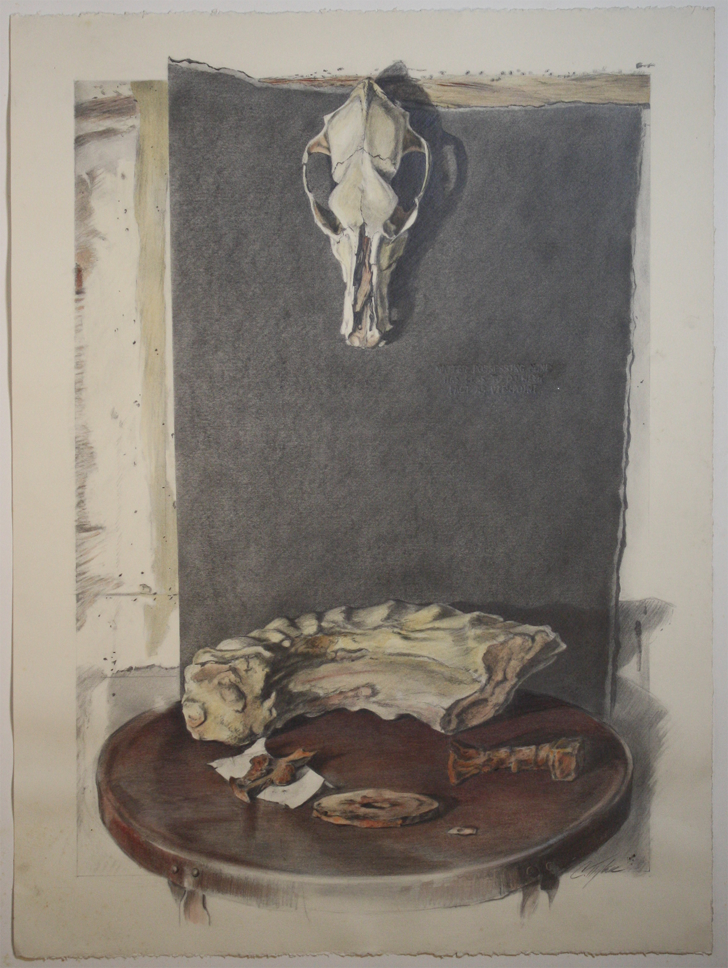 Conte’, graphite & colored pencil, animal tracks 30″ X 43″